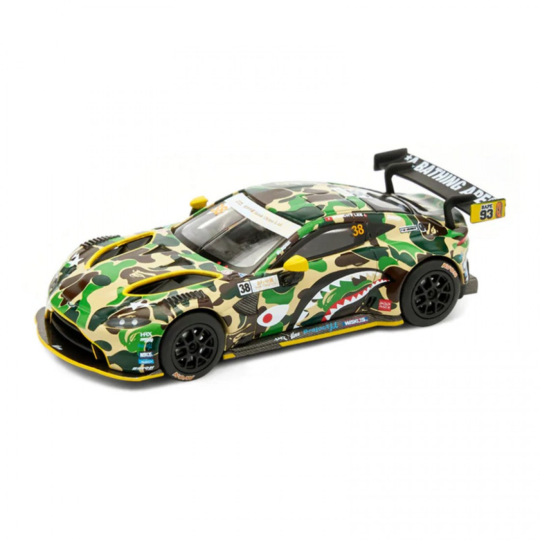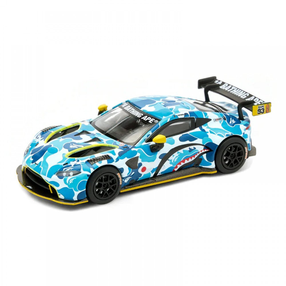 Introducing the Poprace x Bape Aston Martin GT3, a die-cast model car that captures the signature style of the iconic sports car. This pOPRACE BAPE crossover model is perfect for any Aston Martin enthusiast.